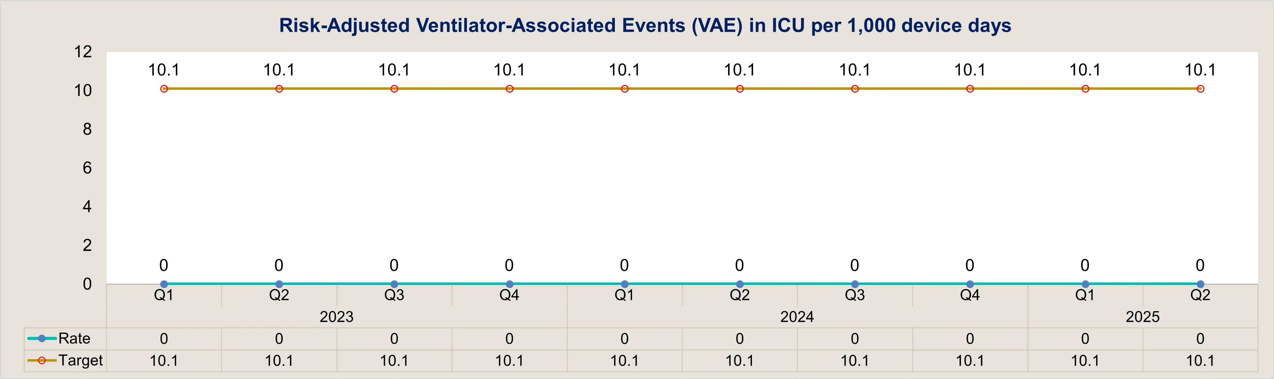 Prince Court reported zero cases of risk-adjusted Ventilator-Associated Events (VAE) in ICU.